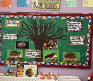 We’ve been learning all about Autumn and the wonderful changes it brings! We read a lovely story about hedgehogs and then made our own clay hedgehogs. We also painted spiky hedgehogs, collected colourful leaves to make cozy hedgehog beds, and explored the beautiful colours of Autumn by painting autumn trees. Our classroom is now full of warm autumn colours and happy hedgehogs!